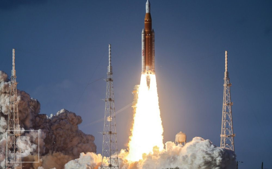 Raketa Space Launch System uzletjela je prema nebu dok se gotovo pun Mjesec nalazio na udaljenosti od oko 400.000 kilometara.