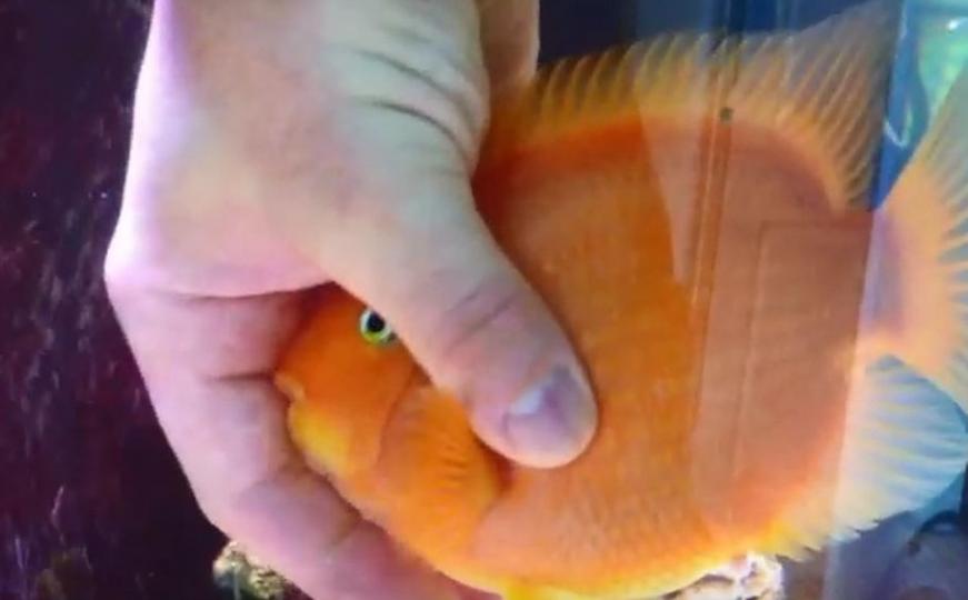 Riba papagaj ciklid snimljena je kako uživa da se igra s vlasnicima i čeka ih da se vrate s posla kako bi je fino 'češkali'...