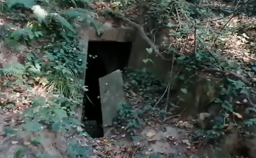 Nakon stotinjak metara makadamskog puta koji se oštro odvaja od glavne ceste i još toliko koraka kroz šumski teren, tek djelomično vidljiva betonska ploča otkriva ulaz u bunker.