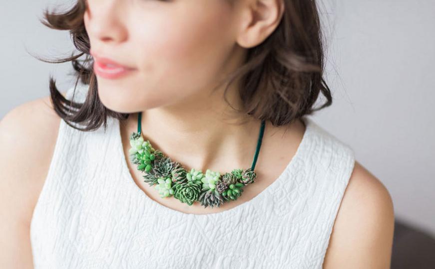 Za izradu ogrlica, prstenja, naučnica, domišljata koristi sukulente, biljku koja je u našoj regiji poznata kao čuvarkuća. Biljke, kada se iskoriste za izradu, u periodu od dvije do četiri sedmice mogu se nostiti, a onda ih možete odvojiti od baze nakita i posaditi u vaznu.