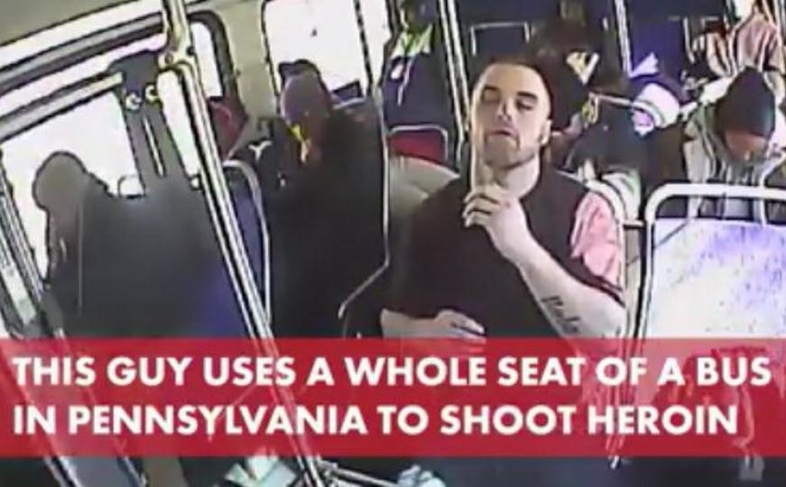 Muškarac je snimljen kako sebi ubrizgava heroin usred skoro punog autobusa u blizini Filadelfije, piše NYPost.