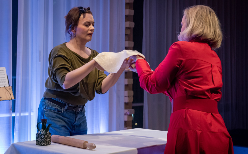 U predstavi igraju Selma Alispahić i Džana Džanić, dok autorski tim čine dramaturg Adnan Lugonić, scenografkinja i kostimografkinja Adisa Vatreš Selimović, kompozitor Oliver Josifovski, fotograf Velija Hasanbegović i dizajner plakata Almir Kurt Kugla.