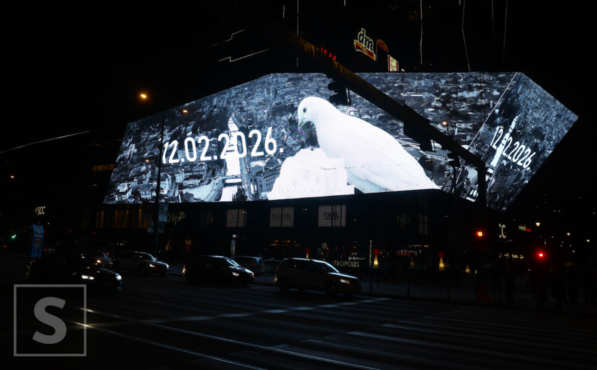 Na bilbordu u Sarajevu večeras, 14. februara, se pojavila emotivna fotografija – bijela golubica koja nadlijeće grad, uz datum 12. februar 2026. Ovaj simbolični prikaz podsjeća na dan kada je Sarajevo zašutjelo.