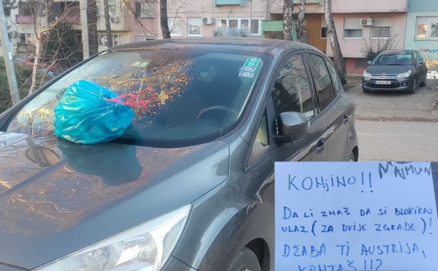 S obzirom na to da nadležne službe nisu reagovale, stanari su odlučili poslati jasnu poruku. Na automobilu je ostavljena poruka u kojoj se vozaču skreće pažnja da je blokirao ulaz za dvije zgrade, uz ironičan komentar: "Konjino, da li znaš da si blokirao ulaz za dvije zgrade. Džaba ti Austrija, kontaš".