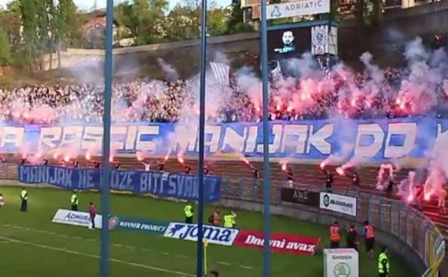 Navijači Željezničara danas su na južnoj tribini okačili veliki transparent na kojem je pisalo "Mirza Raščić Manijak do kraja".
