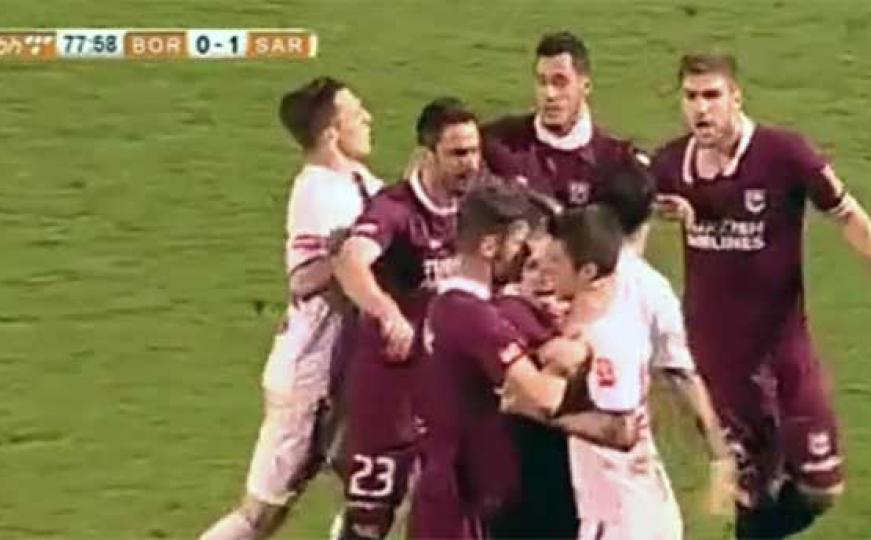 Naguravanje na terenu između igrača Borca i Sarajeva: Tri crvena kartona za par minuta (VIDEO)