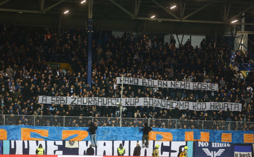 Na transparentu je pisalo: "Kako bolan nema Bosne? A Srbi završavaju Kup Bošnjacima kod Hrvata!"