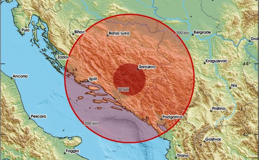 Podsjećamo, EMSC je i sinoć objavio da je zabilježen potres u Bosni i Hercegovini, temeljem dojava korisnika, pri čemu su građani Mostara naveli kako su osjetili kratko podrhtavanje tla.