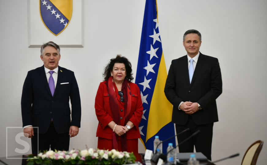 Predsjedavajući Predsjedništva BiH Željko Komšić i član Predsjedništva BiH dr. Denis Bećirović primili su danas, 3. februara specijalnu izaslanicu Ujedinjenog Kraljevstva Velike Britanije i Sjeverne Irske za Zapadni Balkan damu Karen Pierce.