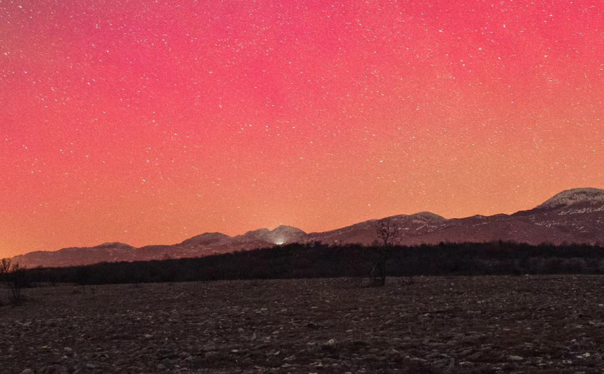 Noćno nebo bilo je ispunjeno intenzivnim nijansama crvene i ružičaste boje, koje su se prelijevale iznad horizonta, stvarajući gotovo nestvarnu atmosferu.