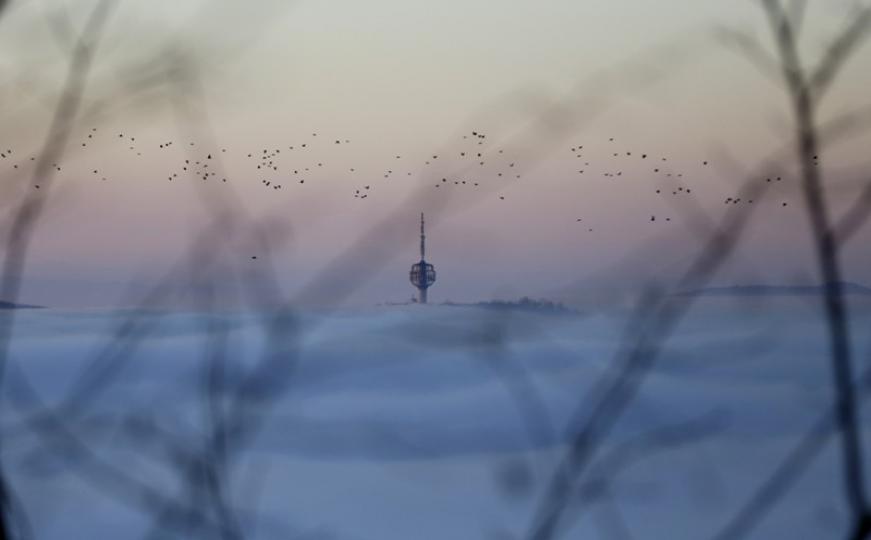 Posjetioci Trebevića imali su priliku uživati u predivnom zalasku Sunca iznad maglovitog grada. Prizor su dodatno ukrasila jata ptica koja su letjela iznad sloja magle.