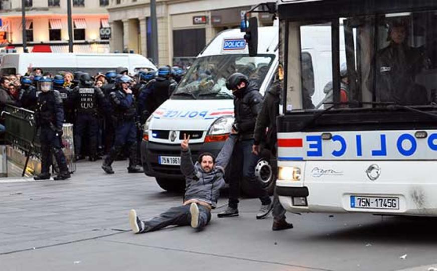 Glasnogovnik policije Pariza Michel Cadot kazao je novinarima kako je od 200 do 300 osoba prekrišilo zabranu okupljanja i protestovanja koje je na snazi zbog vanrednog stanja što je proglašeno u Parizu nakon posljednjih terorističkih napada gdje je smrtno stradalo 130 osoba.