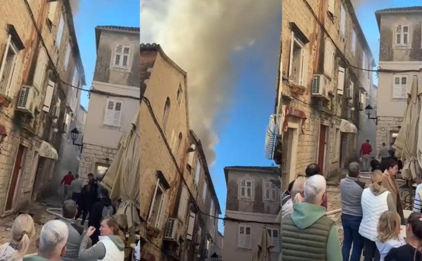 Oko 12.50 sati u staroj jezgri grada izbio je požar koji je zahvatio cijeli jedan blok kuća, a iznad grada se nadvio gust dim.