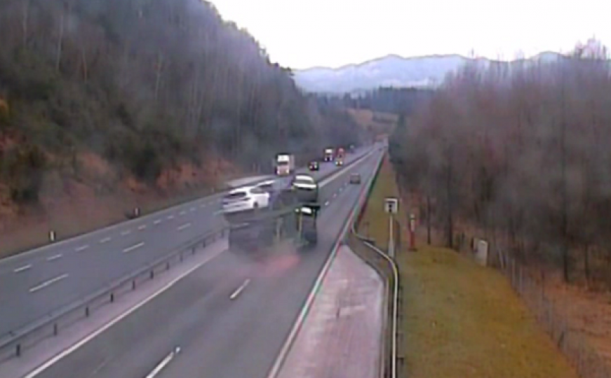 Kompletan događaj na autoputu između Maribora i Celja snimile su kamere, a na snimkama se jasno vidi kako je vozač kamiona koji je prevozio automobile, izgubio kontrolu nad svojim vozilom.