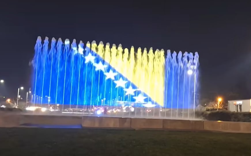 Povodom obilježavanja Dana nezavisnosti Bosne i Hercegovine, grad Zagreb je sinoć osvijetlio fontane u blizini Nacionalne i sveučilišne knjižnice u bojama bh. zastave.