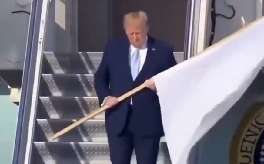 Video koji je generisan umjetnom prikazuje Trumpa koji izlazi iz aviona noseći bijelu zastavu koja se inače podiže kao znak predaje.