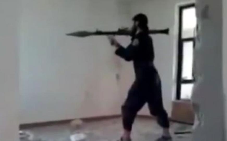 Brojni svjetski mediji objavili su snimak navodnog teroriste Islamske države (IS) kako je, u pokušaju da ispali granatu iz raketnog bacača, raznio sam sebe.